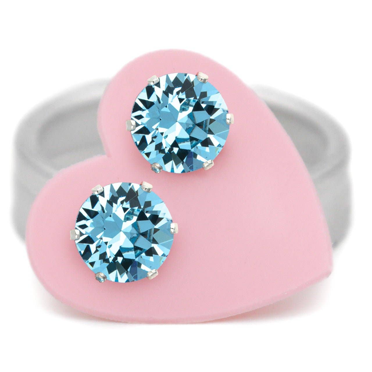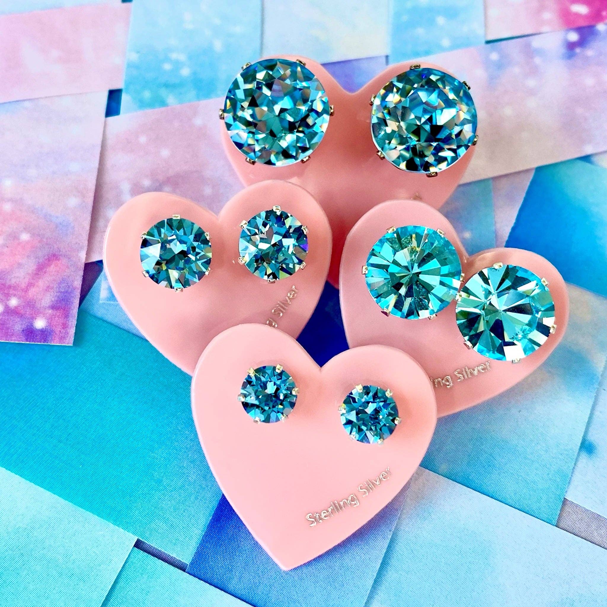 Aqua Mini Bling Sterling Silver Stud Earrings